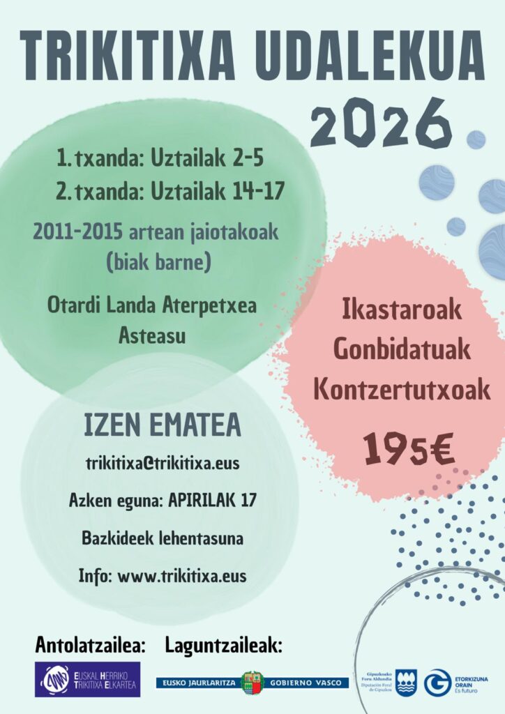 Euskal Herriko Trikitixa Elkarteak 11 eta 15 urte arteko gaztetxoentzat Udaleku egonaldiak antolatu ditu.